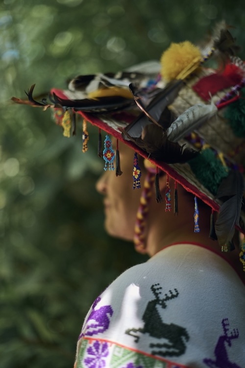 Al llegar, un guía vestido con atuendo tradicional wixárika da la bienvenida mediante un ritual suave y profundo. El agua y el aroma del copal marcan el inicio de un estado mental más pausado, más atento.