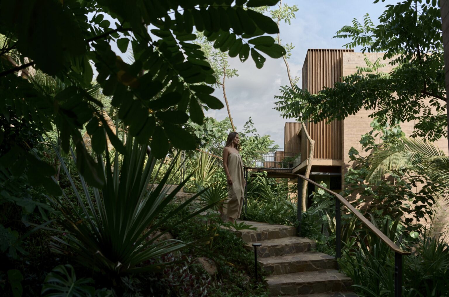 Suites y villas se integran entre palmas, acantilados y raíces entrelazadas, enmarcadas por diseños abiertos que diluyen la frontera entre interior y exterior.